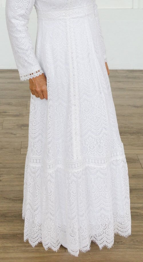 After wearing the same temple dress for 15 years, I decided it was time to get a new one. All of these are beautiful but I chose Charlotte 3067 because it had a zipper in the front. I can no longer do back zippers and buttons are difficult for me also. The lace is absolutely gorgeous. So that also caught my eye. When I received the dress I held it up and my first thought was "Oh dear, it's kind of heavy." But no need to worry. Once I had it on, It fit comfortably. It is lined so well that there is no need for an underslip. I felt like a bride in it. The look on my husband's face when he first saw me in it in the Taylorsville Temple was all I needed to know it met his approval. I also love the deep pockets. Perfect for holding my bag, key, cough drop, and fan. I am very happy with my purchase. It came in a timely manner. Packaged nicely. The dress is exquisite and I will feel like a bride every time I wear it. (And I am a 61 year old grandma!!).