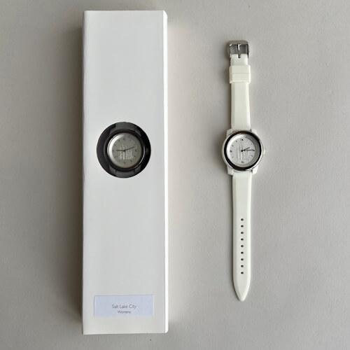 Don't be bombarded with notifications on your watch, get an uplifting image of The House of the Lord with each glance. Beautiful, high quality white band watch is perfect for LDS Temple workers and patrons. Stainless Steel Bezel, Silicon band, Stone indexes and water resistant to 165 ft.