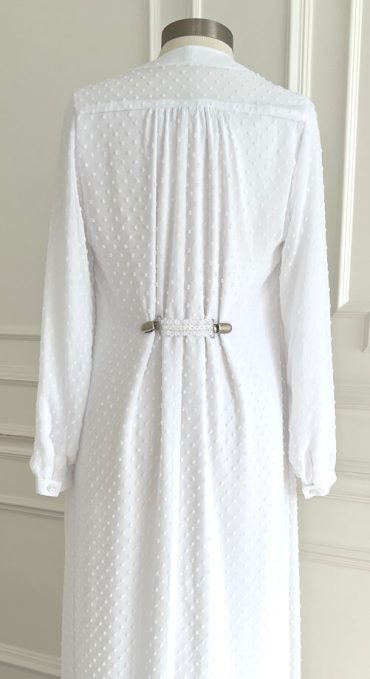 Add a dress clip to create a personal fit and beautiful pleats in the back.