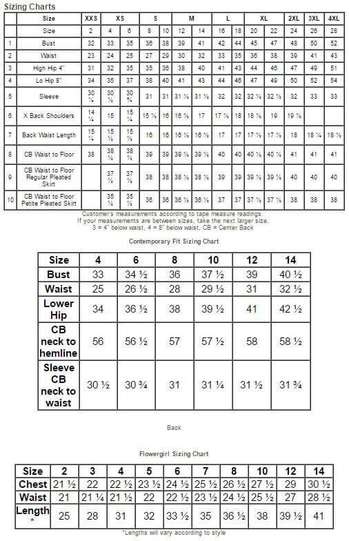 Sizes:  XXS-2, XS-4/6, S-8/10, M-12/14, L-16/18, XL-20/22, 2XL-24/26, 3XL-28