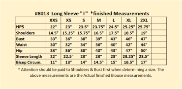 | Blouse Sizes | 2XL 24, LG 16/18, S 8/10, XL 20/22, XS 4/6 |